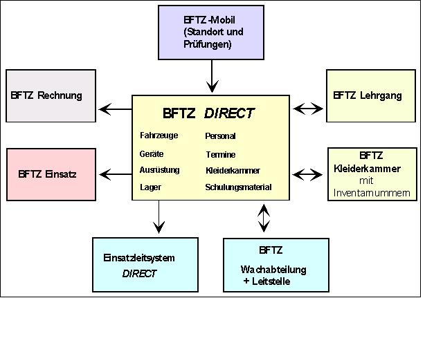 Zentraler Bestandteil unserer Programme für die Feuerwehren ist das Programm BFTZDIRECT. Hier sind die wichtigsten Module bereits enthalten, sodass es sich für den Einsatz bei Berufsfeuerwehren, Feuerwehrtechnischen Zentralen, Stadt- und Werkfeuerwehren anbietet.
