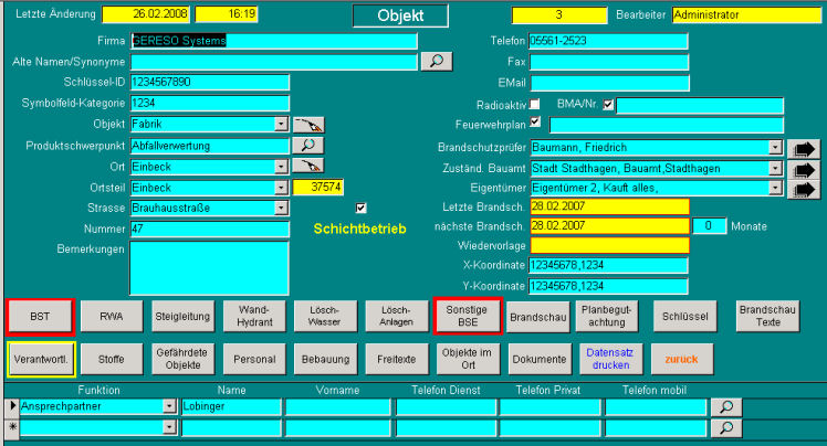 Objekt DIRECT Das Programm für die Aufgaben des vorbeugenden Brandschutzes Hier stehen Ihnen umfangreiche Eingabemöglichkeiten zur Erfassung aller notwendigen Daten zur Verfügung. Sie können Ihren gesamten vorhandenen Schriftverkehr, Beschreibungen, Bilder etc. zu jedem Objekt hinterlegen.